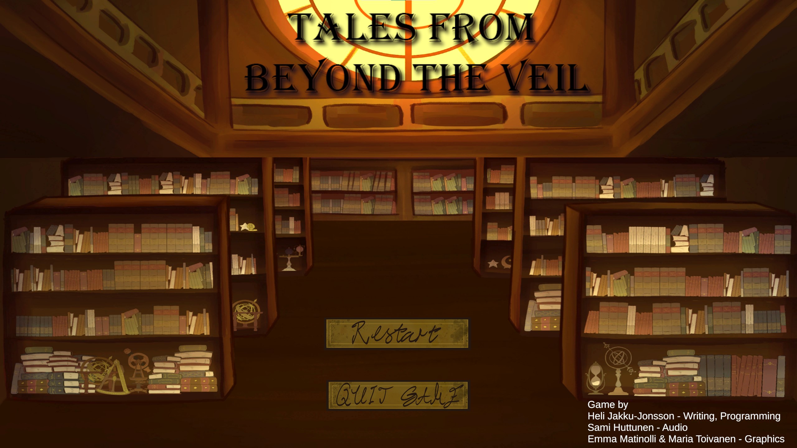 A little game about a mysterious magical library where the veil between reality and fiction blurs. An entry for Finnish College Jam 9
